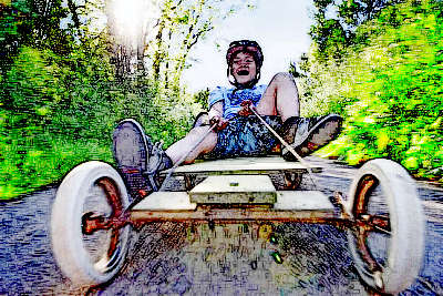 Now, go-karts or more properly soapbox’s were kind of a thing one Summer in our neighbourhood. I think it all started when we discovered putting an upside down dining room table on a baby buggy frame was a heckuva way to fly down the hill at Jagers! Haul the contraption up the hill, everybody jump on and grab a table leg and off we would go – Zoom!